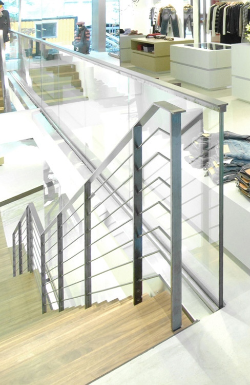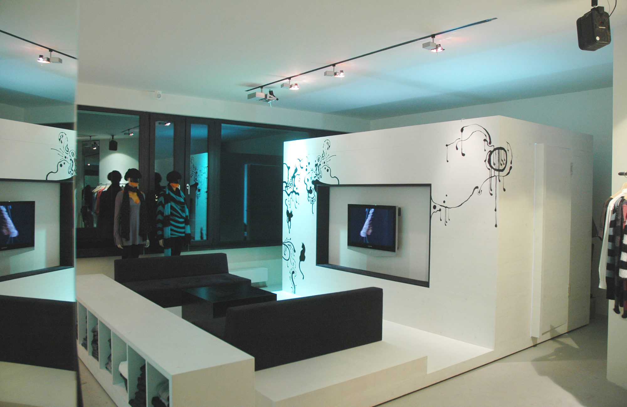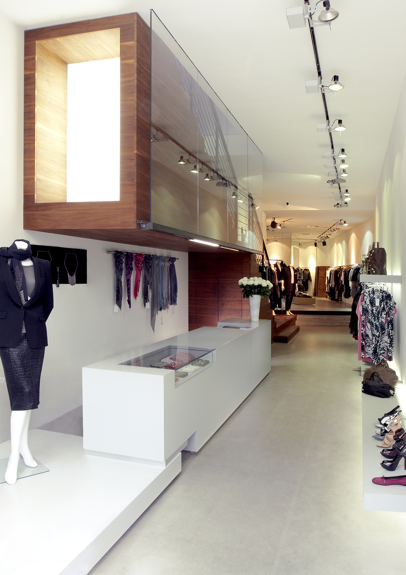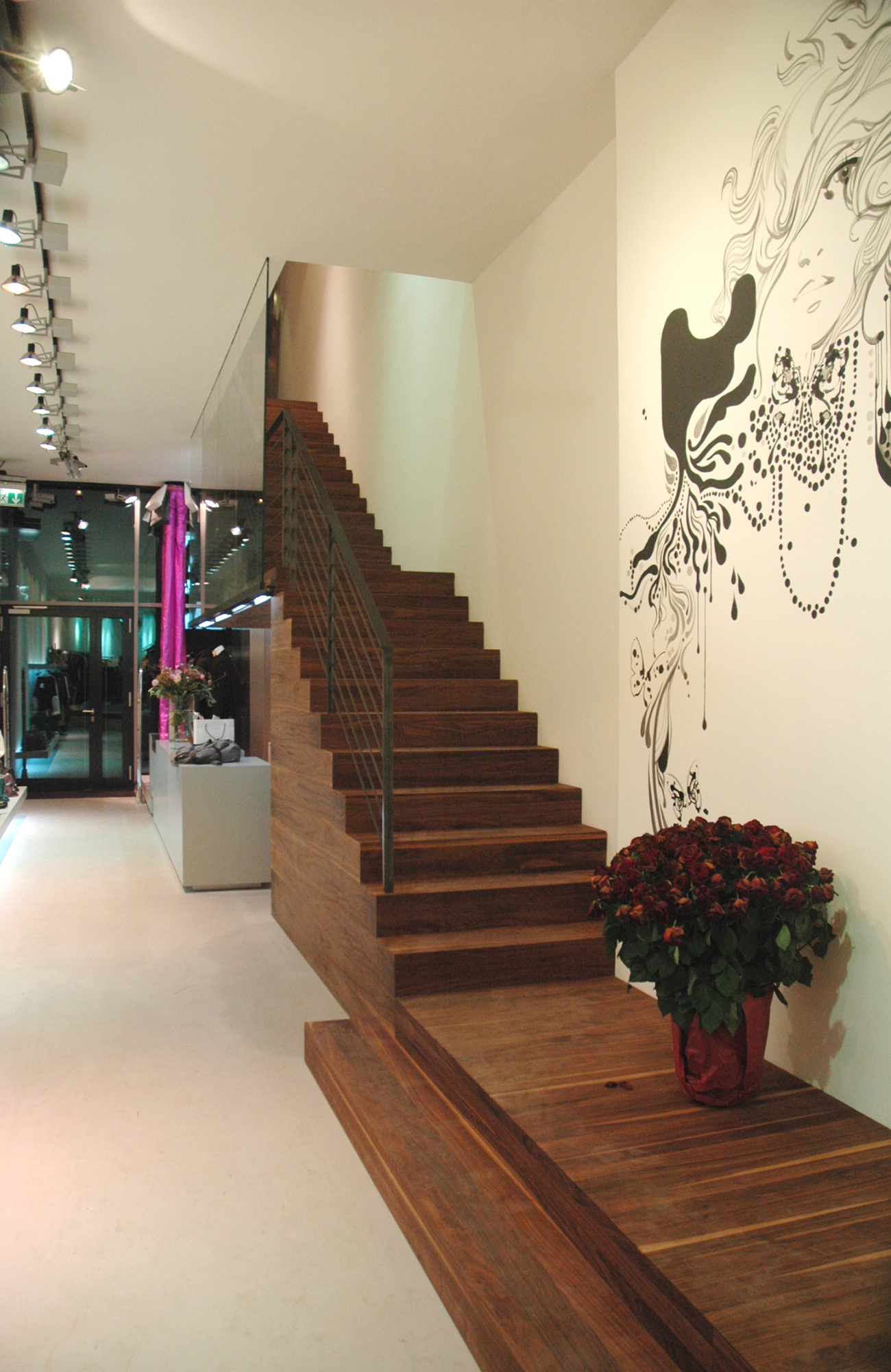For the famous Hamburg concept store Petra Teufel Laura V Rave created a new contemporary design. Core element of the design for the 400 square meter store with two floors is a wooden staircase situated in the narrowest part of the space. The staircase simultaneously serves as entrance to the shop, and informs all other design elements. Following a light vertical alignment the interior space acts a clean backdrop for the presentation of clothes and accessories.