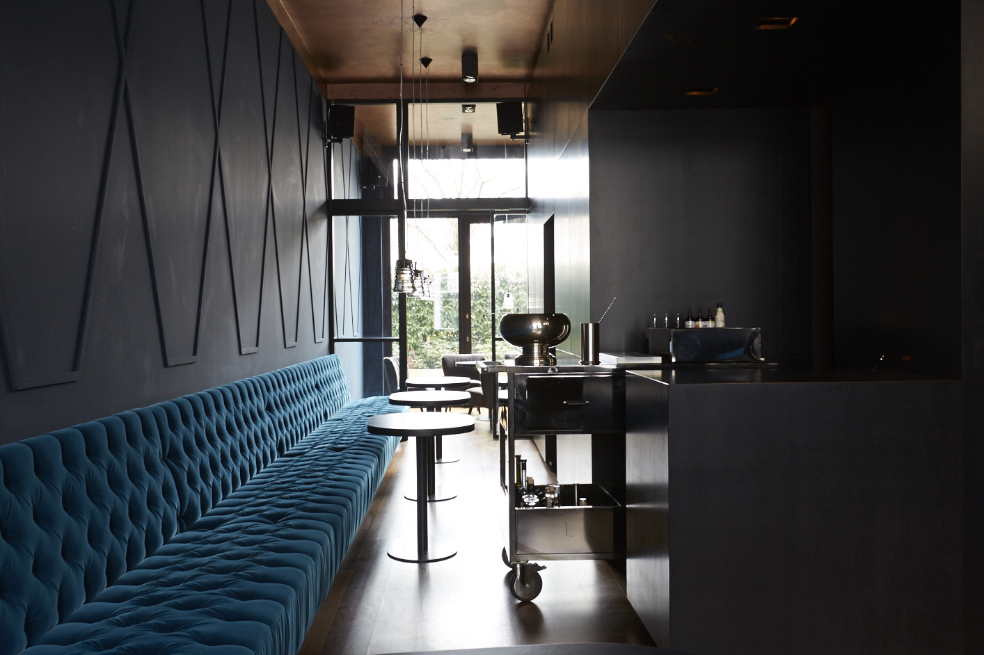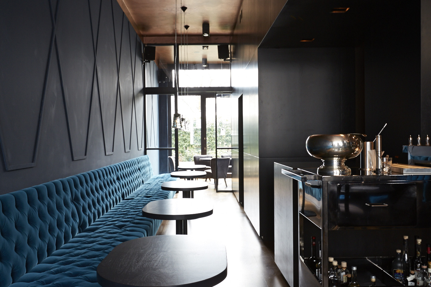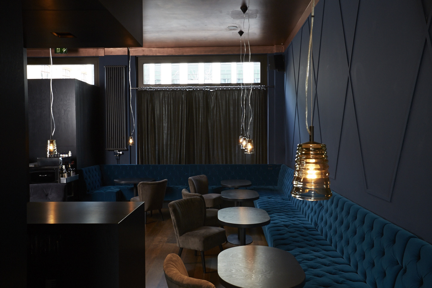 The Punch Bar is the first bar in Berlin without an actual bar. The punches are served with a crome wagon and in silver bowls at the table. The interior is simple and delicate. The polstry shimmers in deep blue, the walls are made of black wood. Glas Tube are hanging from the ceiling and reflecting the gloomy light. A delicious variety of foods are serves with the punches at the small and cosy tables and nishes.